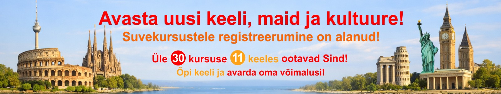 | Uus4933 Inglise keel A2.2 (taasalgaja tase, 2. moodul). Suvekursus T+N 17:15-18:45 (2×2 ak/t nädalas). (V.a. 06.07-15.07.2026) / 16.06.2026 - 27.08.2026 / 459 EUR | T+N 17:15-18:45 (2×2 ak/t nädalas). (V.a. 06.07-15.07.2026) | 16.06.2026-27.08.2026 | 34 | 459 | Registreeru |