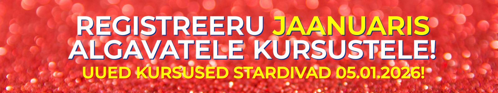 | Uus4842 Eesti keele B1-taseme eksamiks ettevalmistav kursus T+R 16:00-18:15 (2×3 ak/t nädalas) / 13.01.2026 - 05.05.2026 / 1080 EUR | T+R 16:00-18:15 (2×3 ak/t nädalas) | 13.01.2026-05.05.2026 | 90 | 1080 | Registreeru |